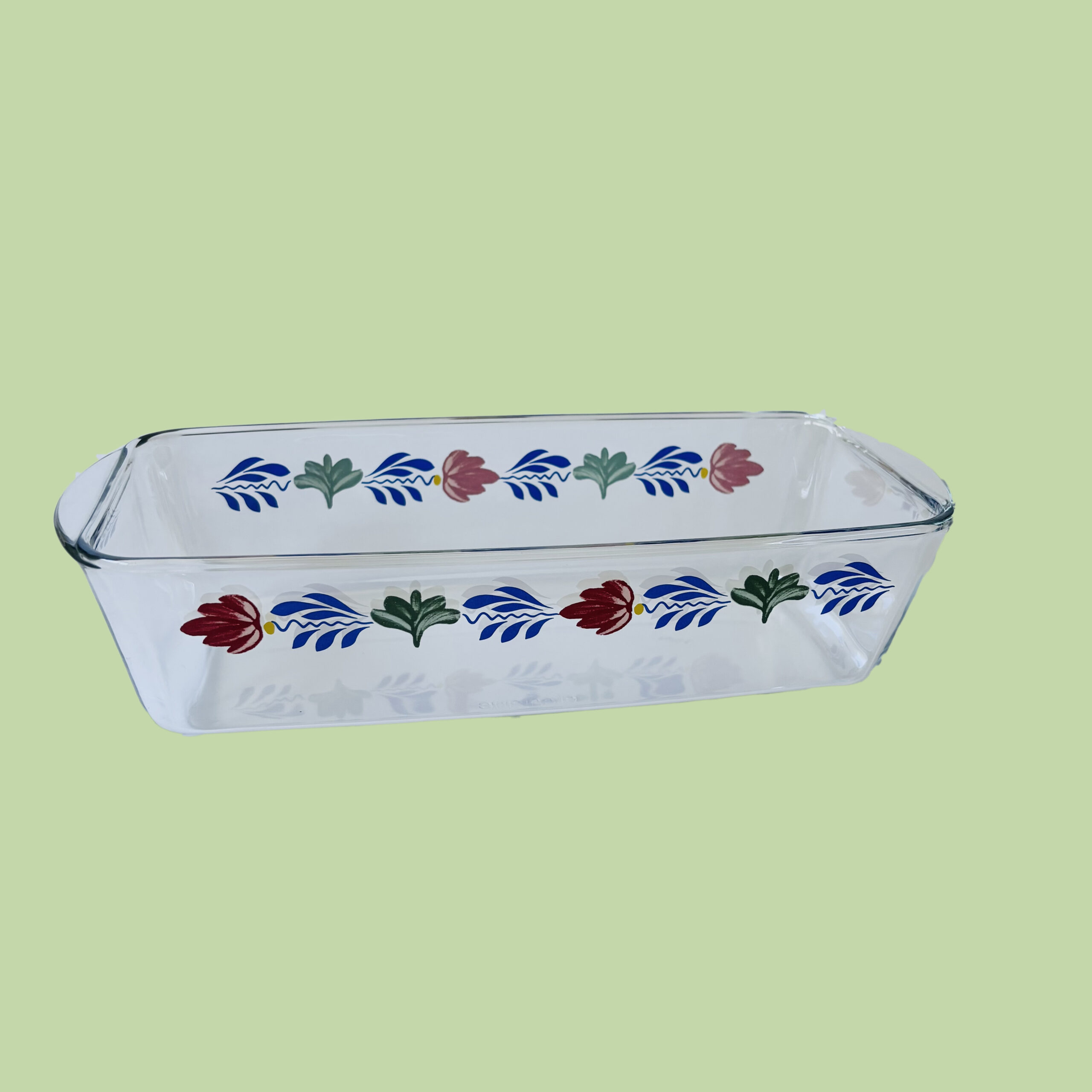 Vintage glazen cake-ovenschaal Boerenbont van Arcuisine France.