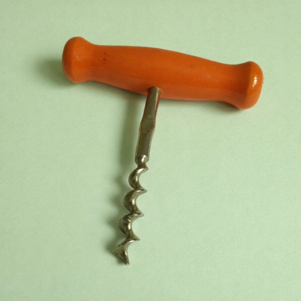 Vintage houten kurkentrekker in de kleur oranje