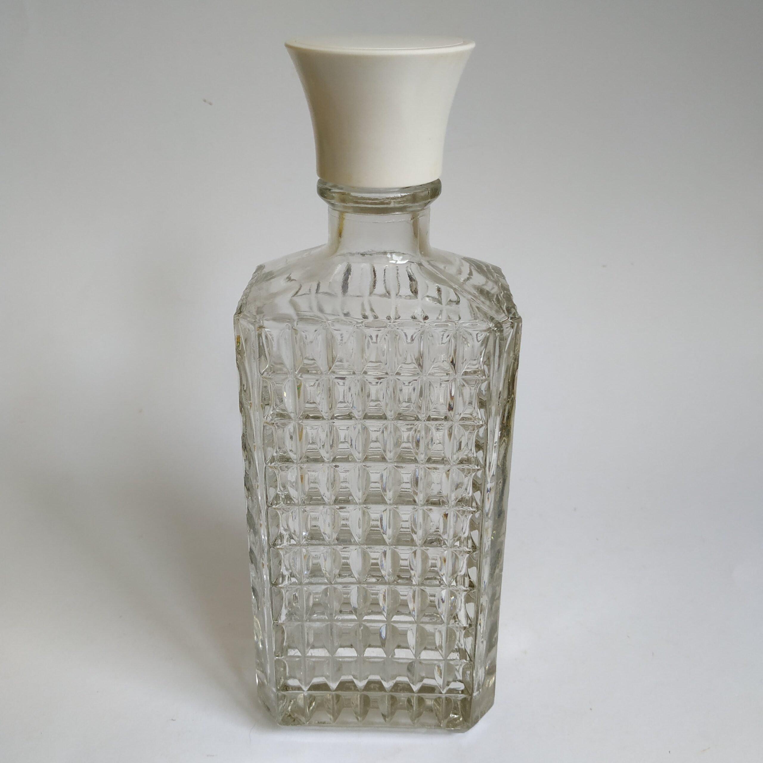 Vintage whisky karaf met een inhoud van 500 ml. De fles heeft een kunststof, goed afsluitbare dop. Hoogte: 23,5 cm. In goede vintage staat.