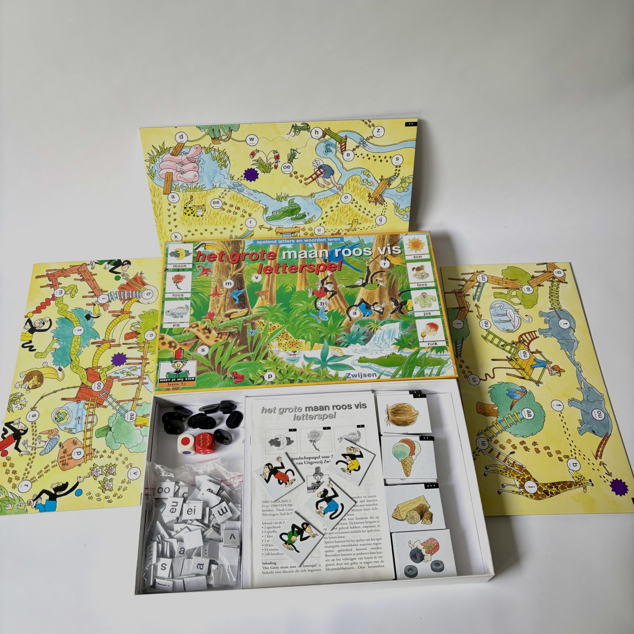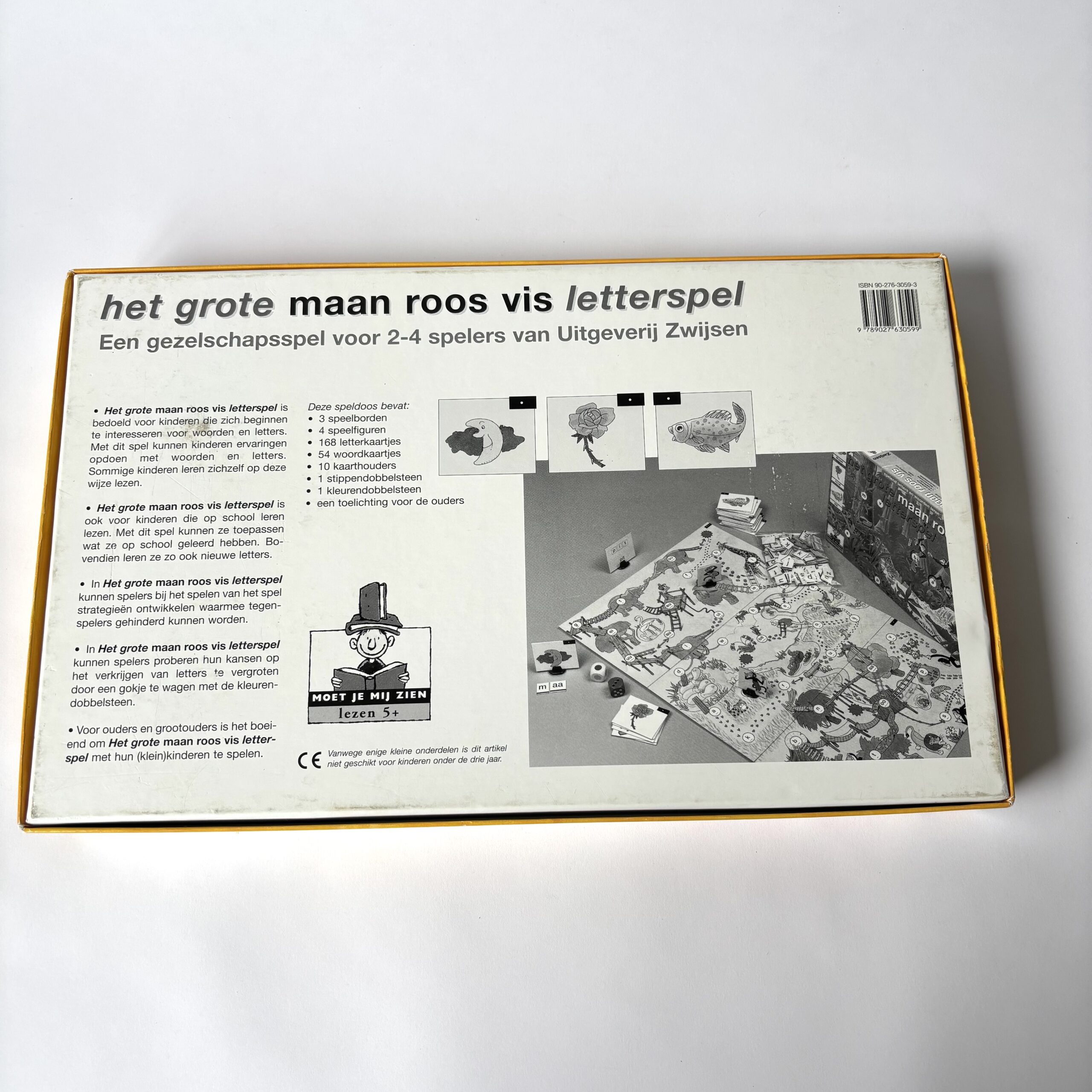 Het grote maan roos vis letterspel van uitgeverij Zwijsen. Een gezelschapsspel voor 2-4 spelers.