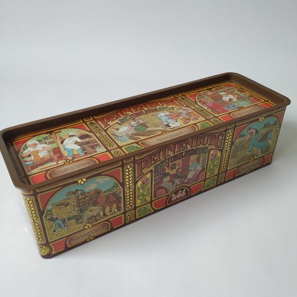 Vintage rechthoekig blik / trommel van Peijnenburg ontbijtkoek uit 1983.