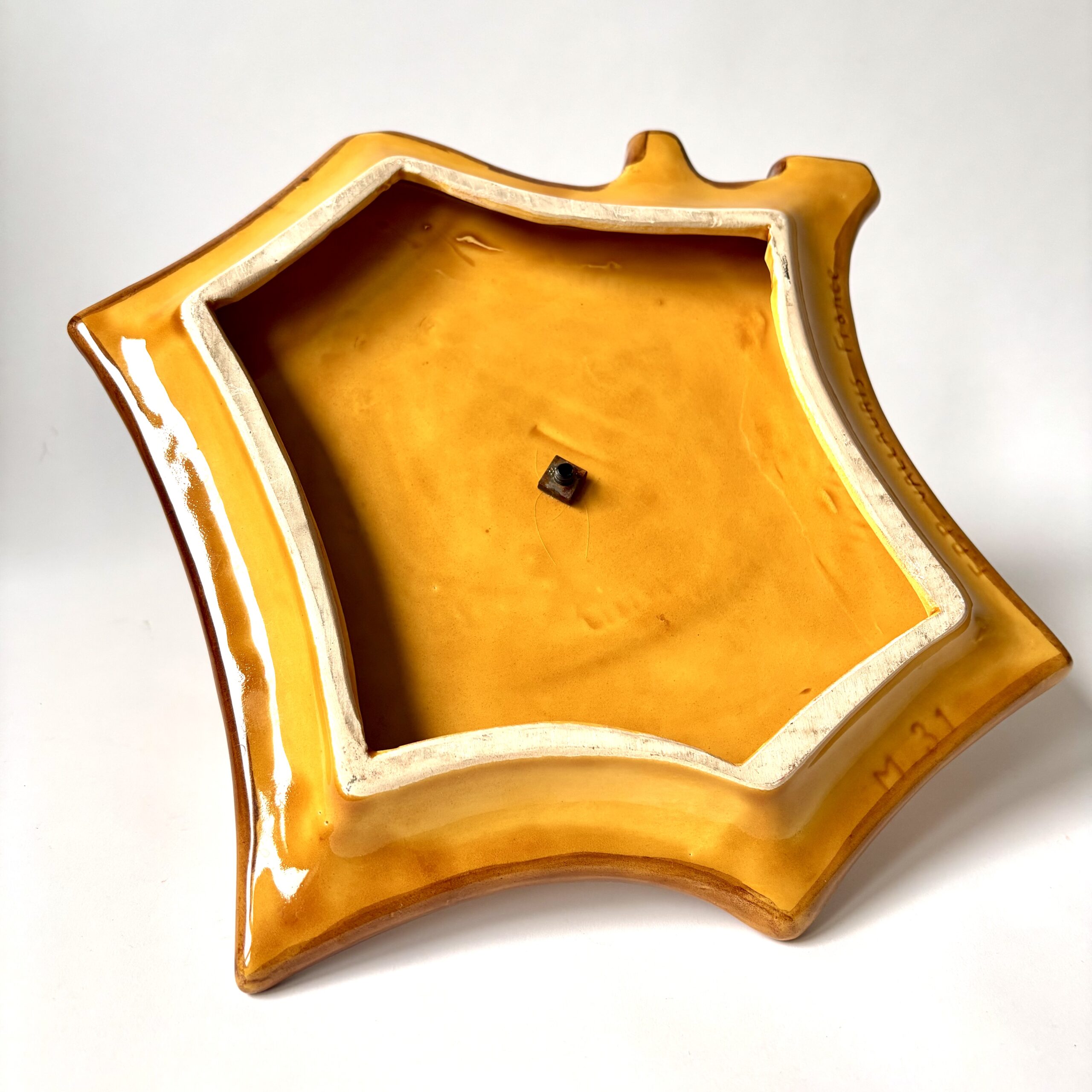 Vallauris France geeft aan dat het stuk afkomstig is uit Vallauris, een beroemd pottenbakkers-/faïence-centrum aan de Côte d’Azur.