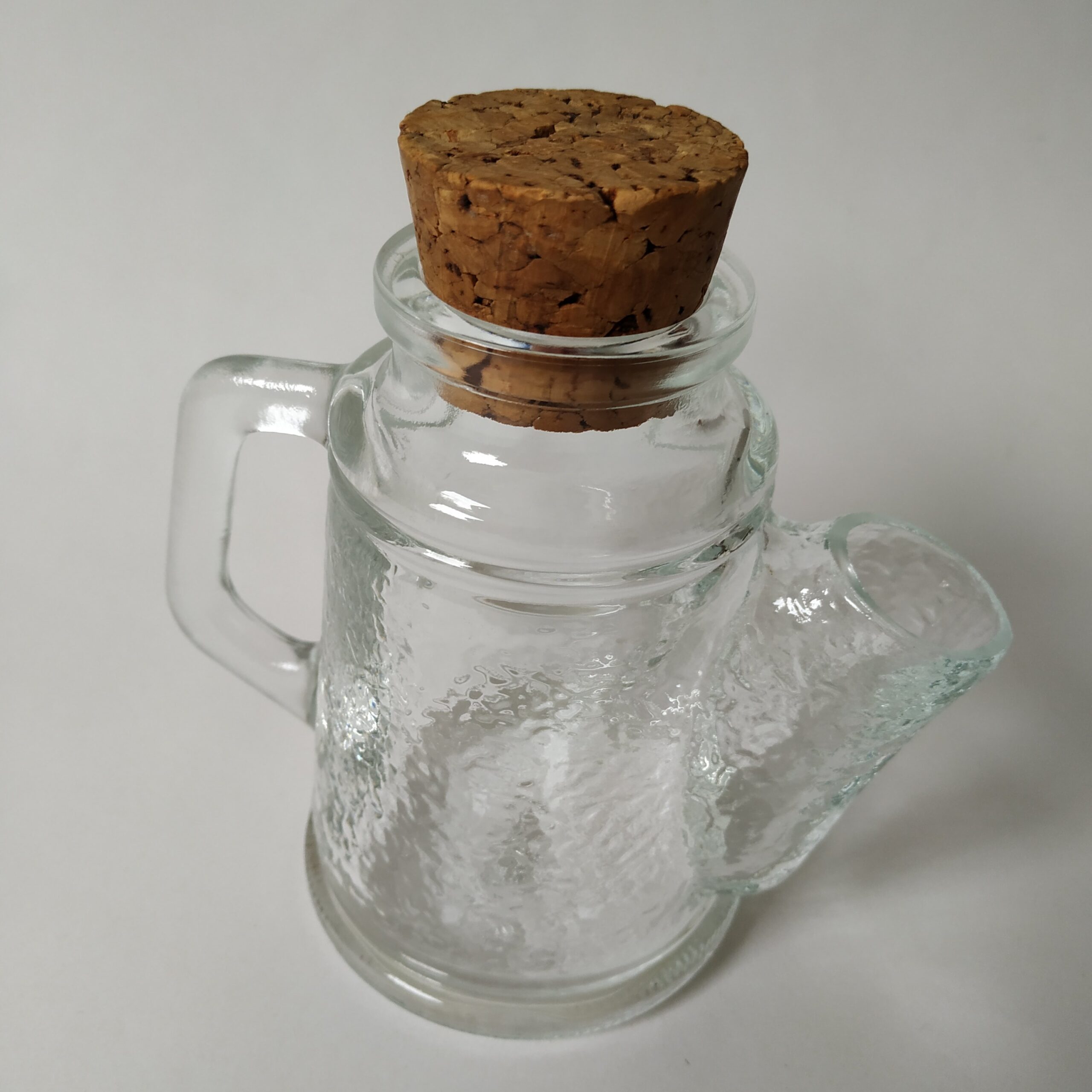 Vintage glazen pindastrooier/pindadispenser met kurken dop van WMF.