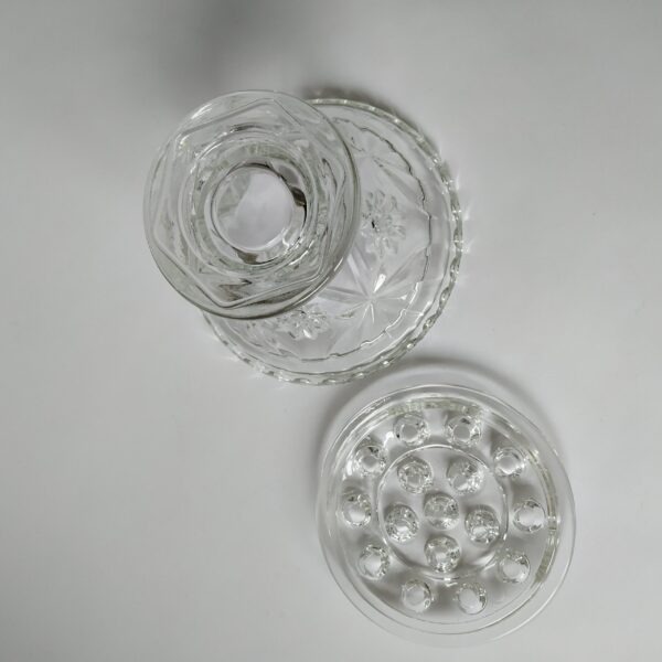 Vintage tweedelige glazen bloemsteker / rozensteker