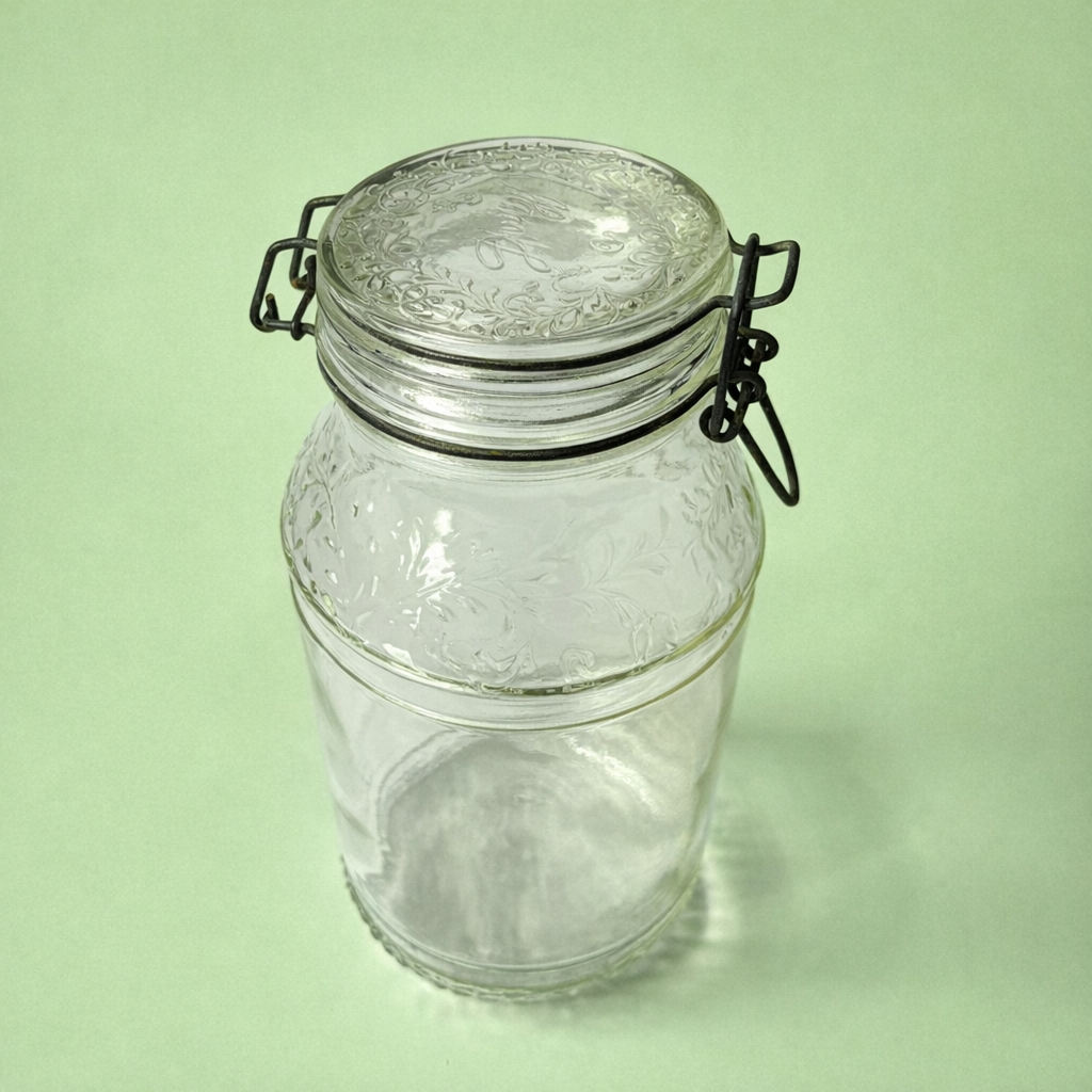 Vintage glazen voorraadpot van Floral Cove Italy, – 1,5 liter