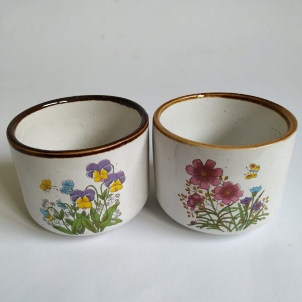Vintage kommetjes uit de jaren 70 met afbeelding van wilde bloemen