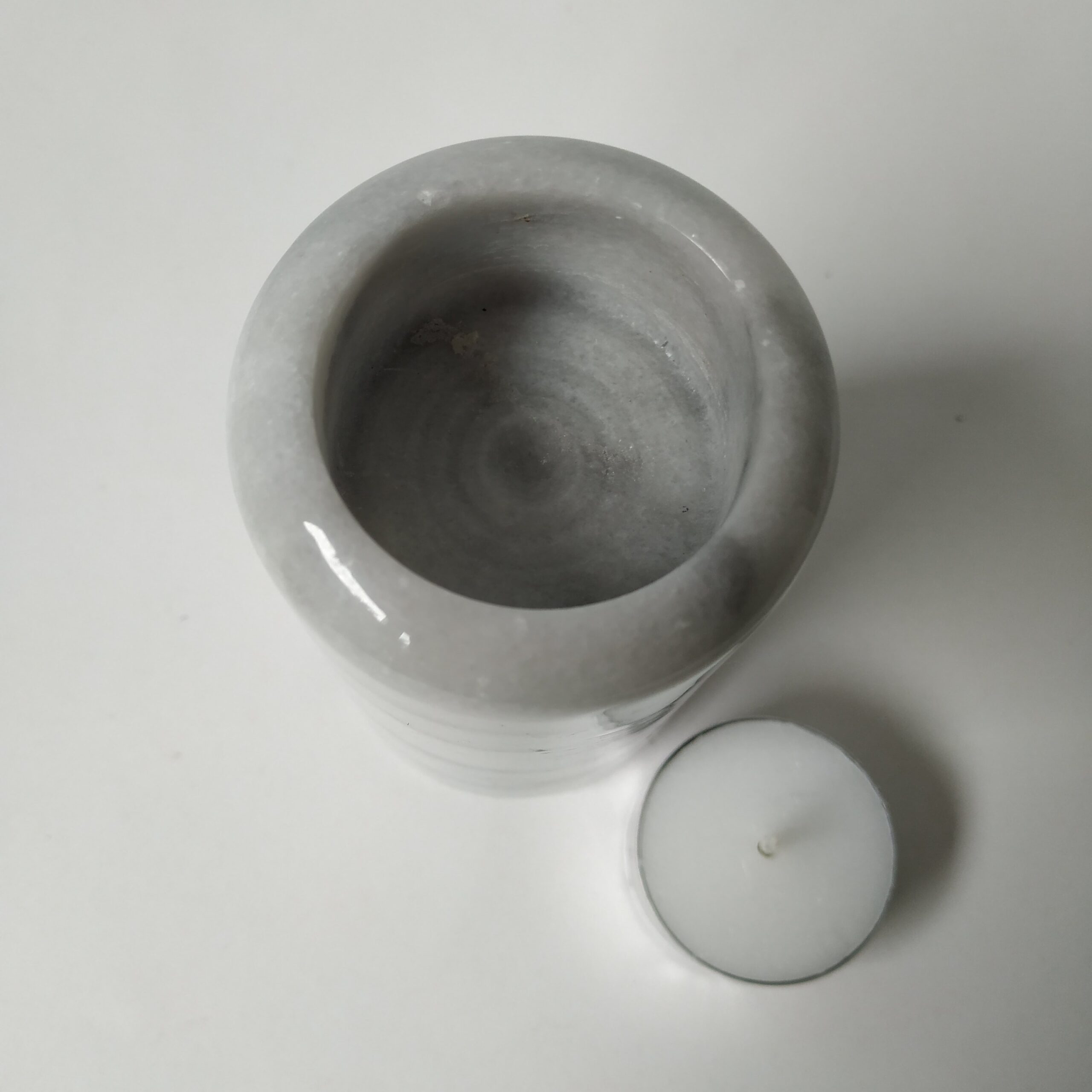 Vintage waxinelichthouder van marmer met waxinelichtje uit de jaren 70.
