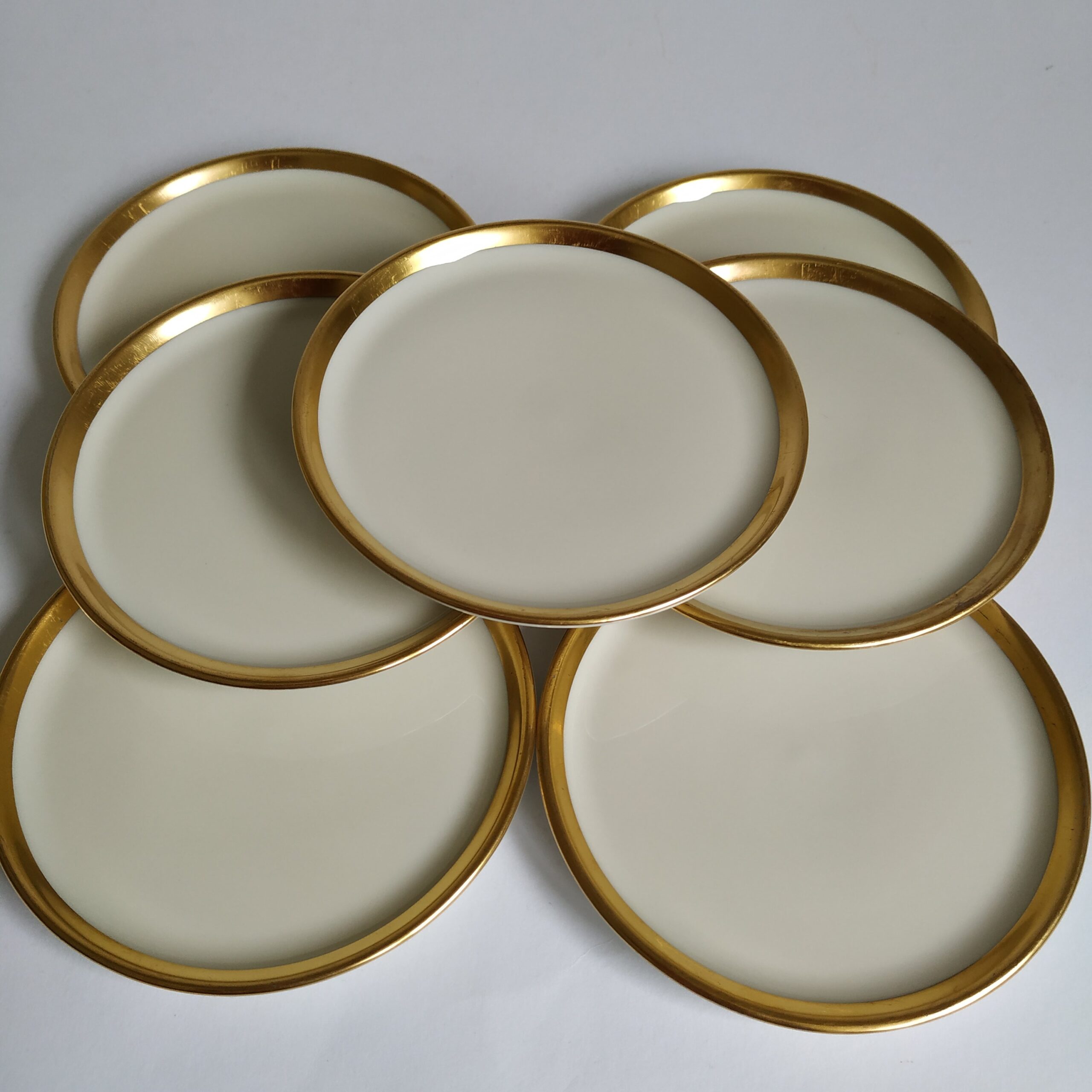 Decoratief hebben de witte schaaltjes een goudkleurige rand.