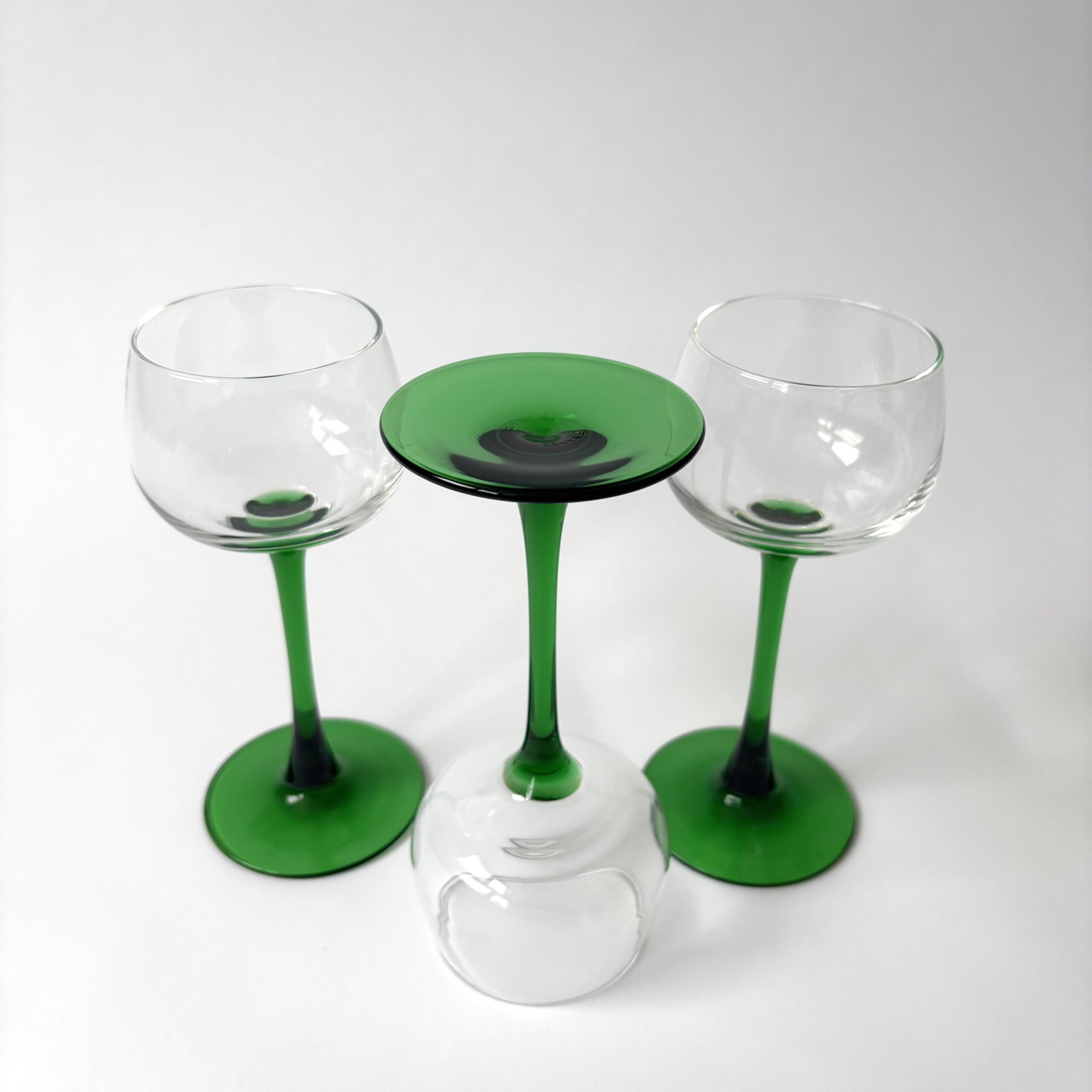 Vintage wijnglazen / moezelglazen Luminarc France met hoge groene voet