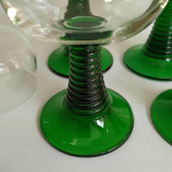 Vintage Moezel – Wijnglazen (France) met groene voet, 6 stuks.